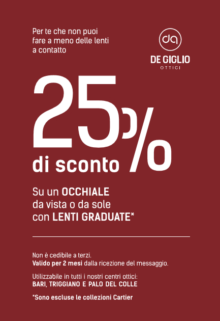 Compila il modulo in questa pagina, attendi la mail e vieni a trovarci in uno dei nostri centri ottici di Bari, Triggiano e Palo del Colle!